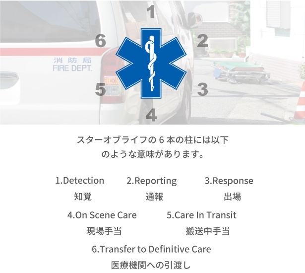 スターオブライフとは、世界的に使われている救急救命のシンボルマーク。